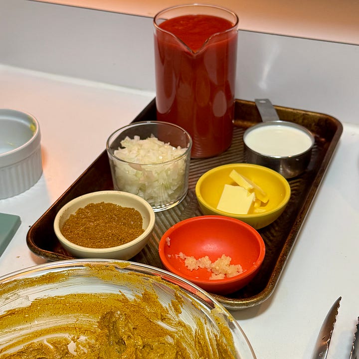 The 1st Try: I can’t find the recipe for the life of me, but it doesn’t matter. It was bad and called for diced tomatoes vs. tomato puree or passata. Butter chicken is traditionally a creamy sauce, so if you find a recipe that calls for diced tomatoes (and there’s no blending involved to smooth it out), immediately exit, close out, goodbye.