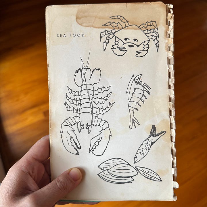 The Feast of the Seven Fishes quickly goes from food for food’s sake, to food for tradition’s sake. I get a little weepy flipping through the pages of my dad’s dad’s cookbook-let published in 1975 and recount the first time I tasted my dad’s Cioppino and consider when I might take on the challenge to make it myself. Food is tradition. This meal is tradition. So go ahead and give everyone a fish, get stressed out in the kitchen, maybe yell at each other over stove space, then sit and enjoy your feast, together.